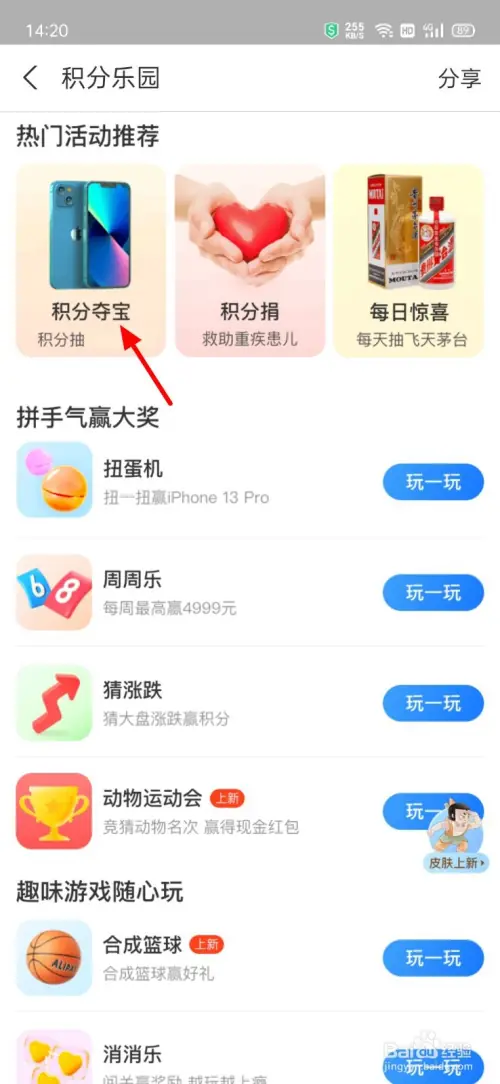 在积分乐园界面,单击【积分夺宝】。
