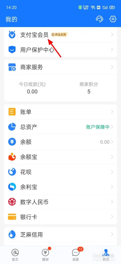 在支付宝我的界面,单击【支付宝会员】。