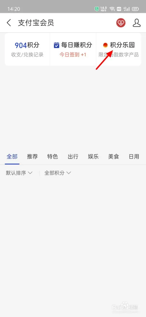 在支付宝会员界面,单击【积分乐园】。