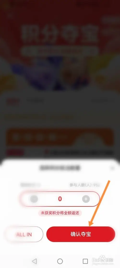 第三步,选择点击【确认夺宝】选项,即可参与积分夺宝。