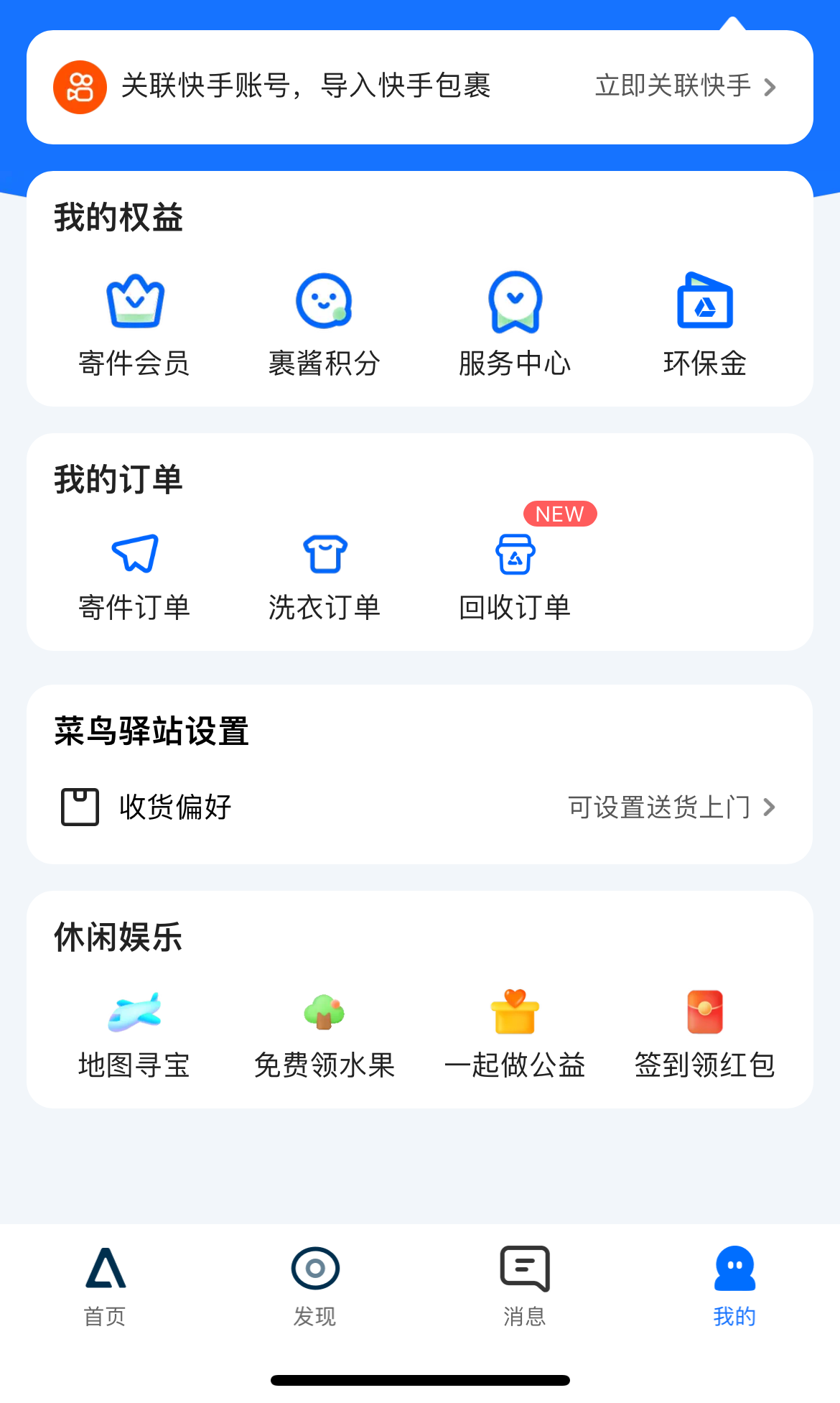 打开手机的菜鸟APP,点击下面的“我的”,进入裹酱积分。