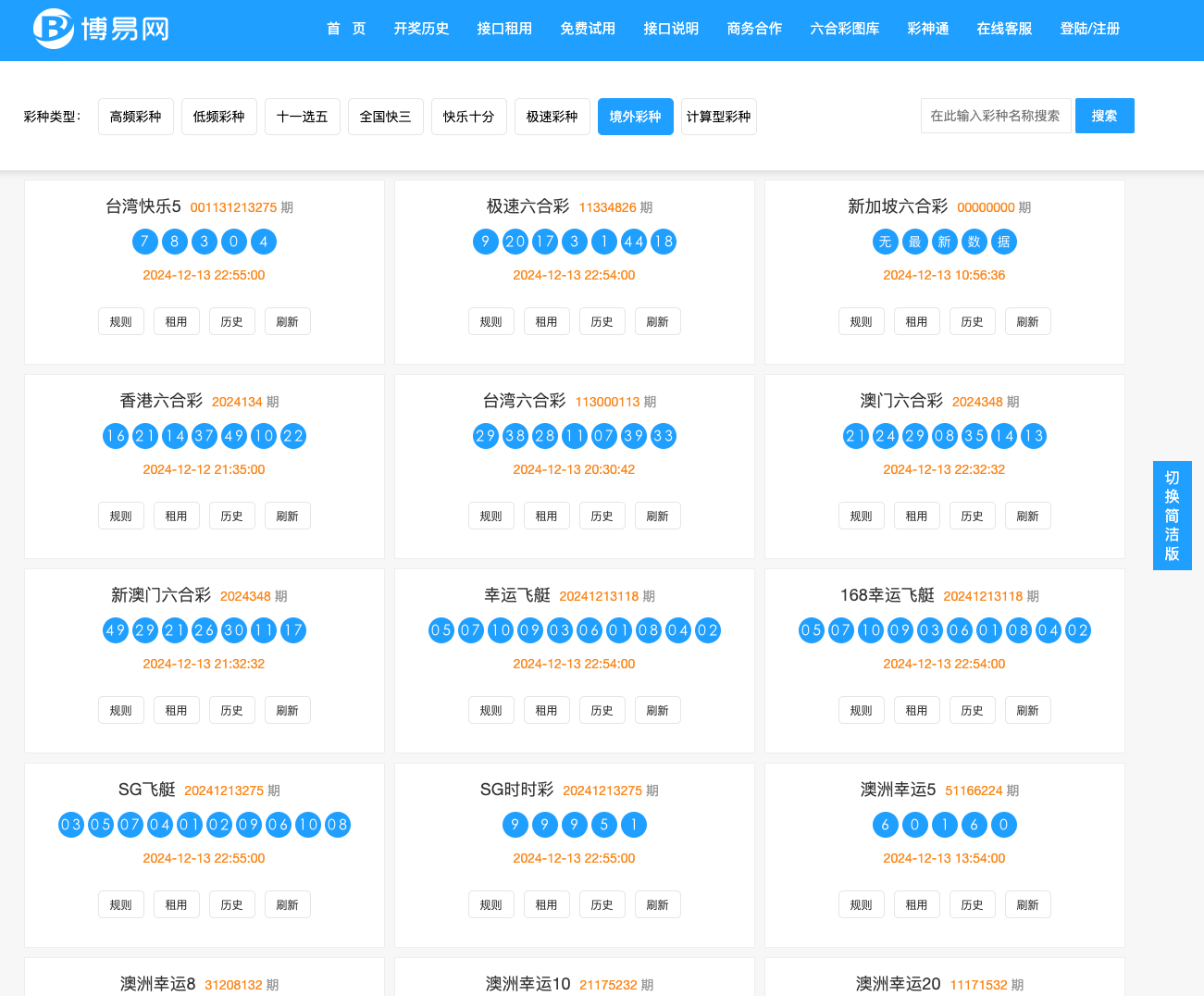 海外开奖数据API接口网